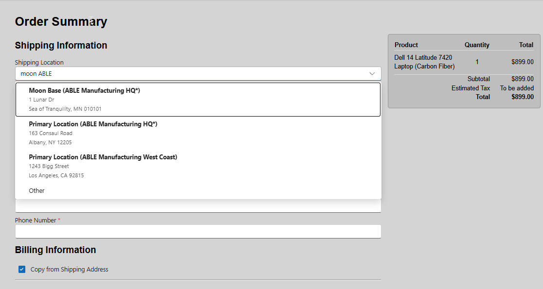 Allow searching on the "Shipping Location" dropdown box on the order page in Storefront. This should allow users with many locations to more easily locate a specific one